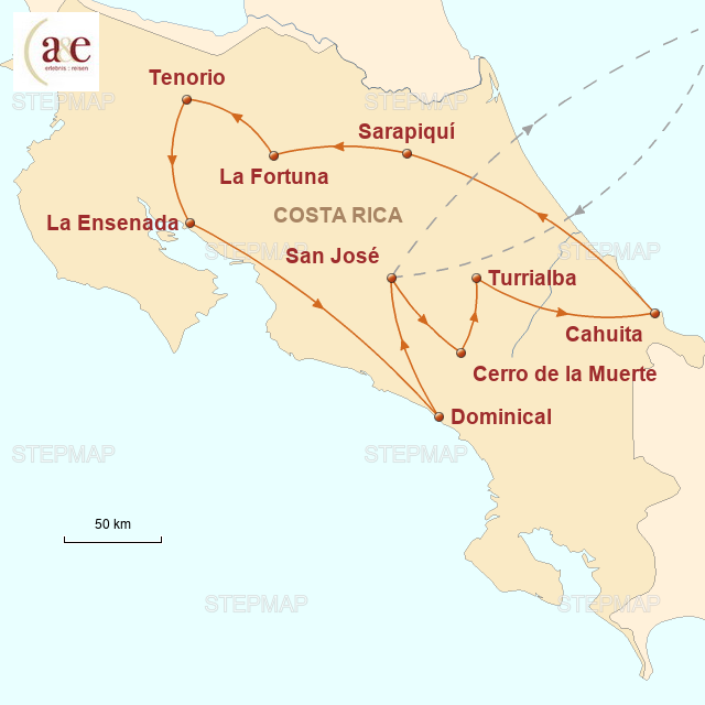 Willkommen im Tropenparadies. Entdecken Sie auf der Mietwagenreise durch das grüne Land der Ticos sowohl die Highlights als auch die unberührten Flecken des vielseitigen und außergewöhnlichen Landes Costa Rica. Wie jeder weiß, ist Gähnen der stille Schrei nach Kaffee, aber haben Sie sich jemals gefragt wo der heißgeliebte schwarze Wachmacher überhaupt herkommt? Begeben Sie sich auf Entdeckungsreise zu Kaffeeplantagen und lassen sich verzaubern bei Wanderungen über bizarre Lavafelder, durch exotische Regen- und Tropenwälder und vorbei an tosenden Wasserfällen. Lassen Sie am Meer von Cahuita bei karibischer Atmosphäre die Seele baumeln und genießen Sie den frischen, leckeren Saft einer exotischen Ananas. Außerdem wartet in Tenorio ein besonderes Frauenprojekt auf Ihren Besuch – lassen Sie sich also überraschen! Authentische Impressionen erhalten Sie in den Zelten Ihrer Lodge in Dominical, auf einer Farm und bei einem typischen Mittagessen im Reich der BriBri Indianer. Mit Erinnerungen an herzliche Begegnungen und vielen unbeschreiblichen Eindrücken im Gepäck heißt es dann ¡Adiós! Costa Rica!
